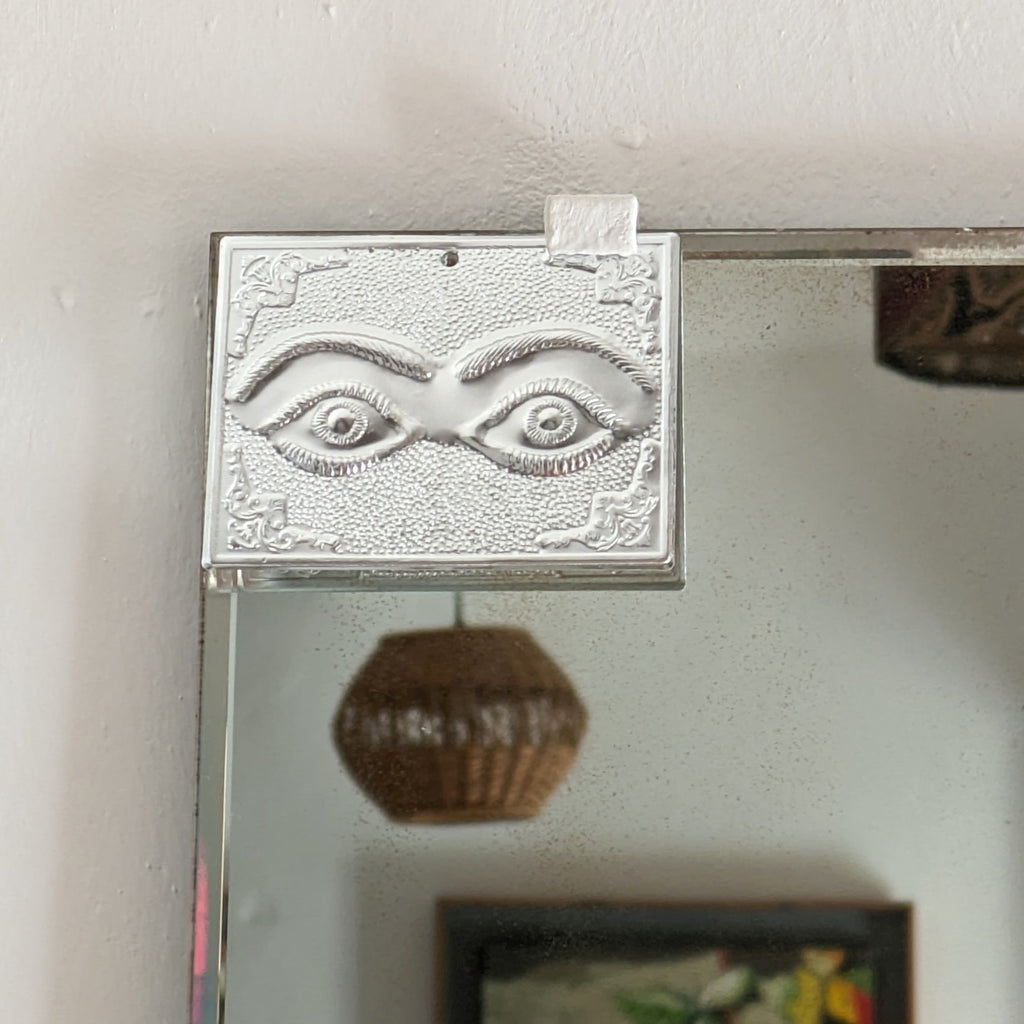 I don’t associate with any religion. (I’ve been agnostic since I was 15.) However, I do find religion and religious artifacts fascinating. There is a level of beauty within them unlike anything else. Be the religion Hindu, Catholic, Greek Orthodox, or what have you, I find myself drawn to temples, churches, convents, and cathedrals all over the world. My emotions vary from wary to wonder; I swing from shame, when I am put off by something, to confusion and embarrassment, when tears come to my eyes unbidden, and I don’t know why they are uncontrollable. At the root of it, I find it incredibly fascinating that people can be so devoted to something which is, in reality, another person’s creation. Is religion the ultimate creative experience? These eyes travel with me wherever I go, they say, look at me with your eyes, I can see. They remind me to keep looking, keep seeing, to keep engaging and to keep believing. Eyes can be a gentle protest against the moral and emotional blindness in the world. We see you.